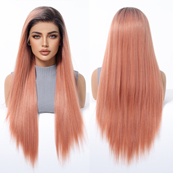 Vrije Stijl 13X6 Lace Pruik Synthetische Toekomstige Vezel Zachte Rechte Zwarte Wortel Ombre Roze Hittebestendig Glad Hoge Dichtheid Kant