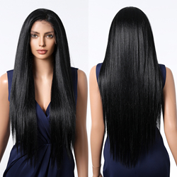 Japanse Fiber 13*4 Lace Front Synthetische Pruik Natuurlijke Zwarte Kant Pruik Lange Gladde Rechte Pruik Zacht Dag Haar