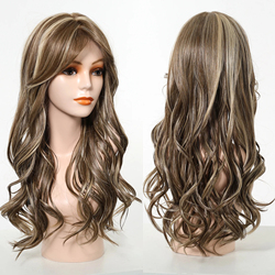 Lange Golvende Kanten Voorkant Synthetische Pruiken Voor Vrouwen Bruin Met Blonde Highlights Mono Top Pruiken Gratis Deel Futura Pruiken Lijmloze
